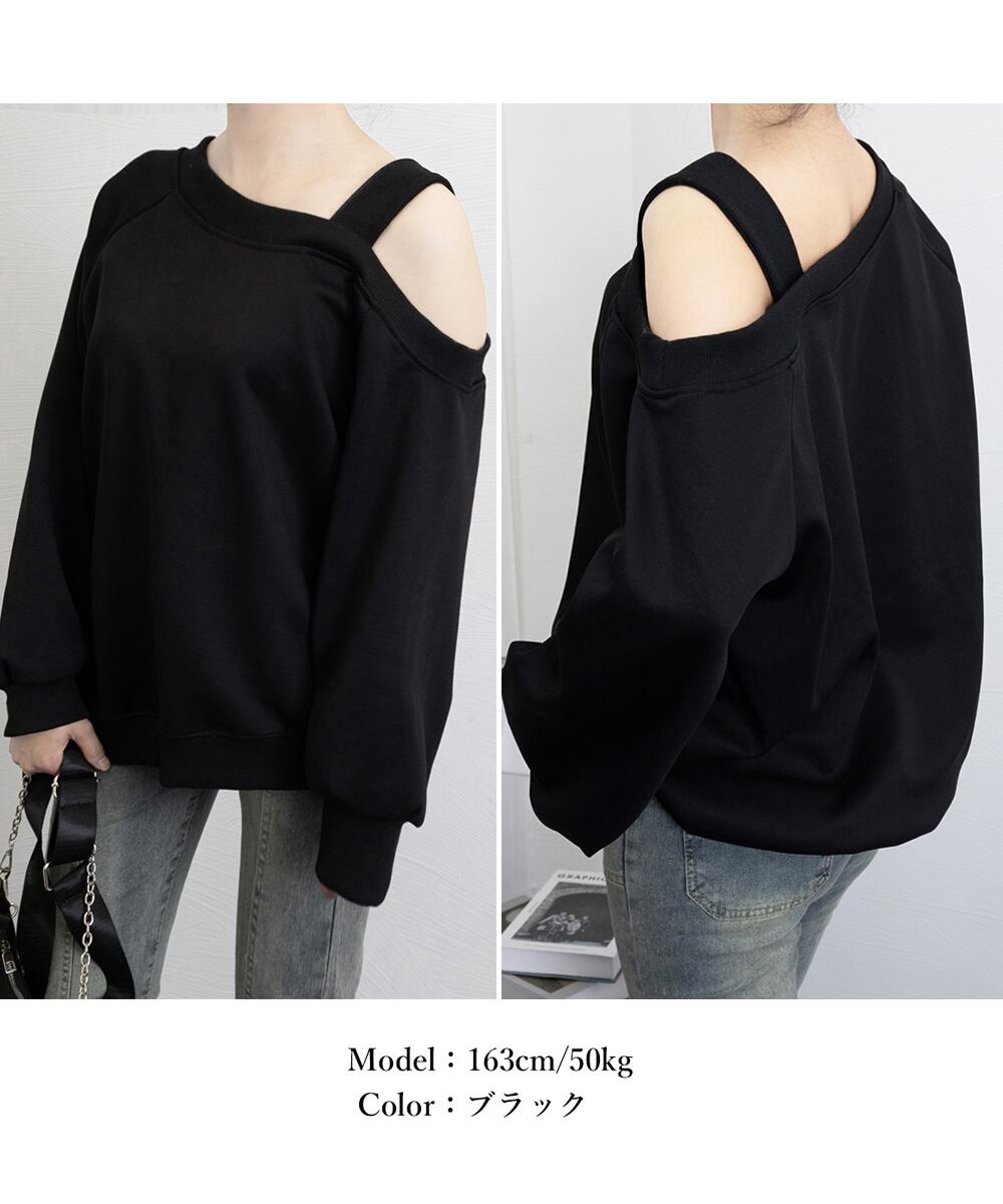 トレーナー レディース カジュアル 長袖プルオーバー 着やせトップス 体型カバー 肩出しロングtシャツ アンシンメトリー