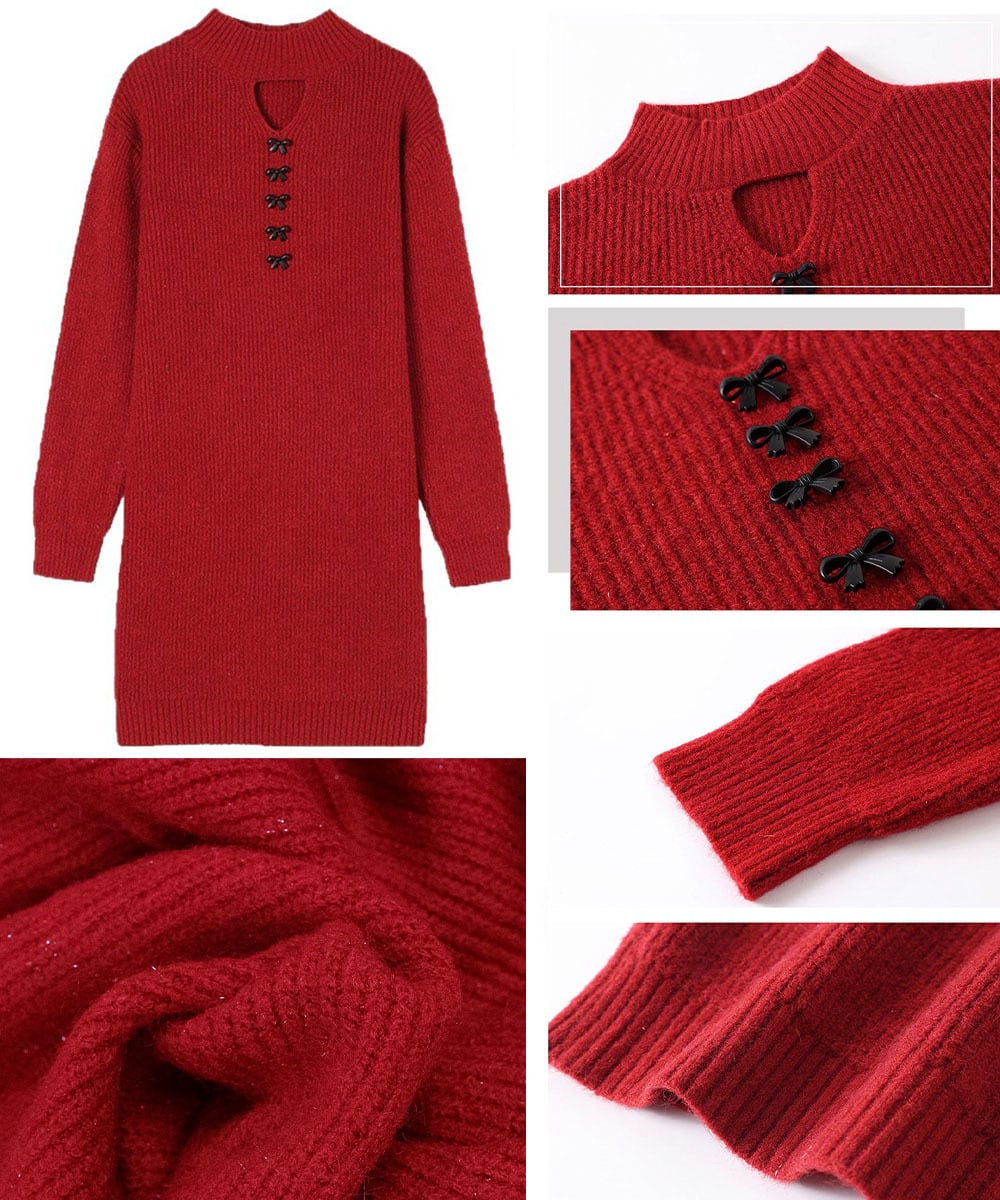 胸元セクシーニットワンピース リボン付き