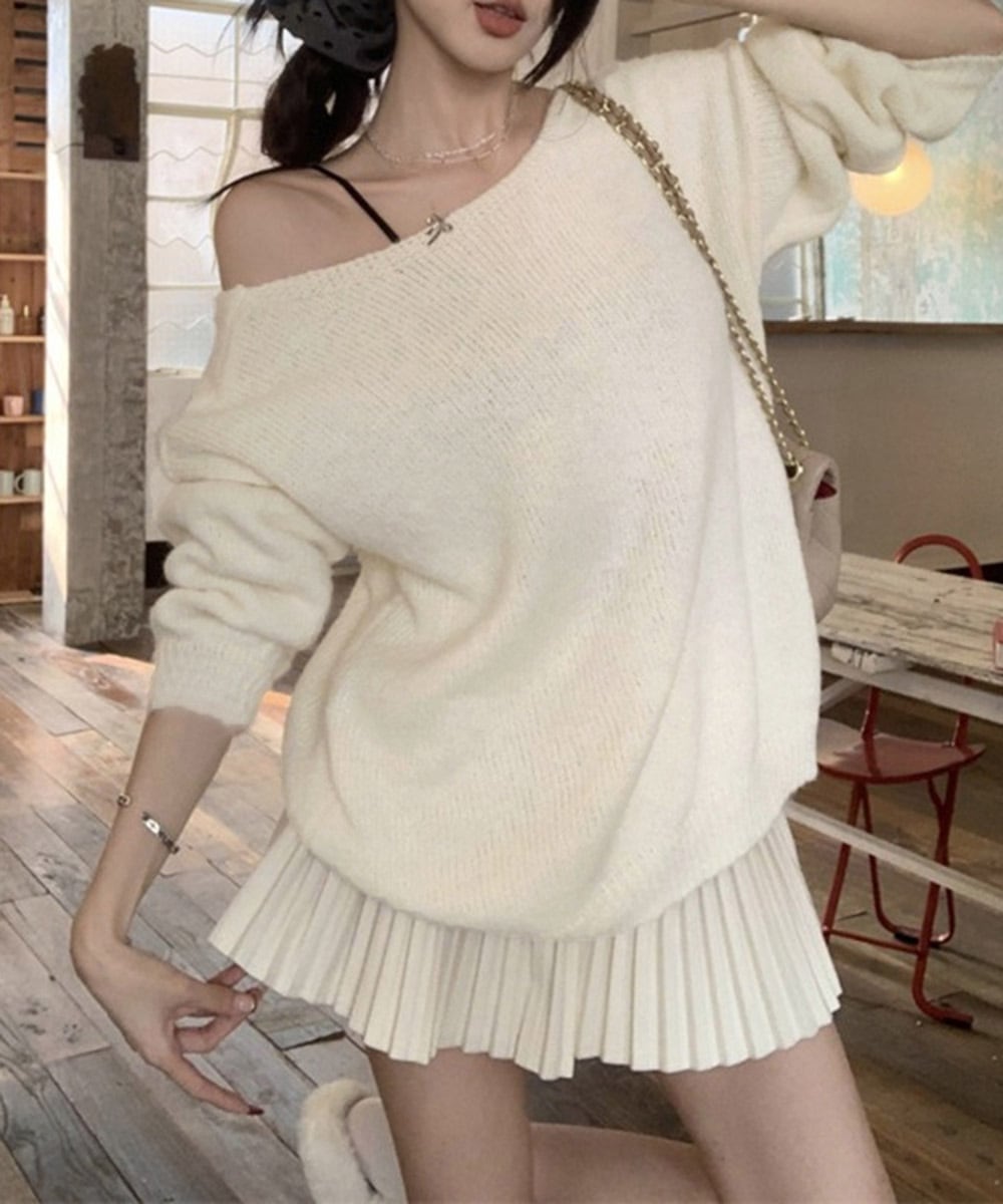 柔らかニット着やせ/エレガントトップス/抜け感ニット華やか