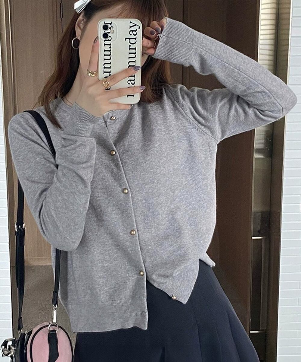 上品な印象のゴールドボタンがポイントのベーシックカーディガン。