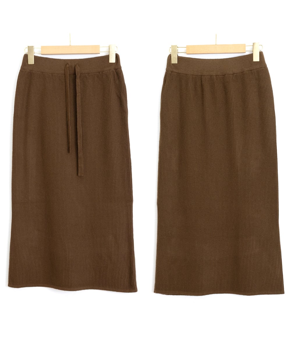 やわらかな風合いのリブニットで仕立てたロングスカート。