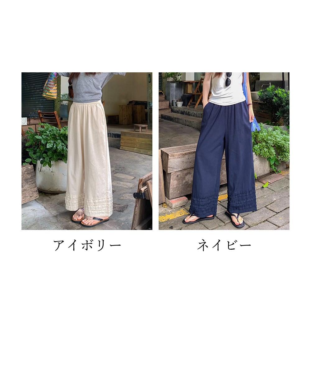 ワイドパンツ フリル レディース 春夏