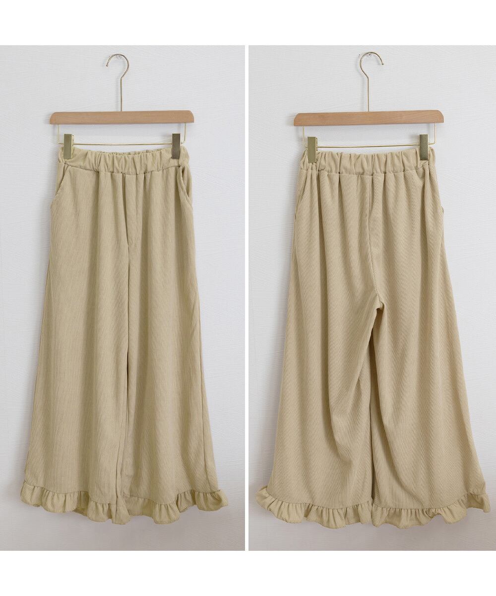 フリル裾ワイドパンツ コーデュロイパンツ