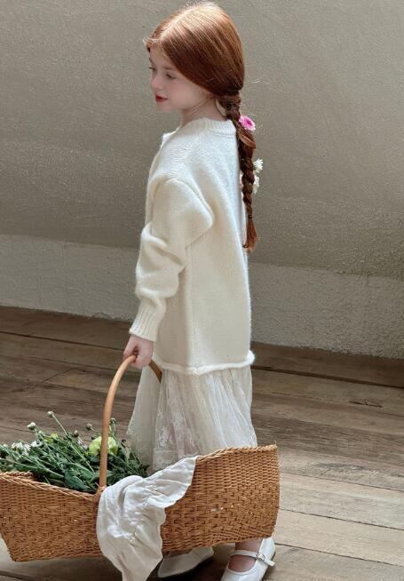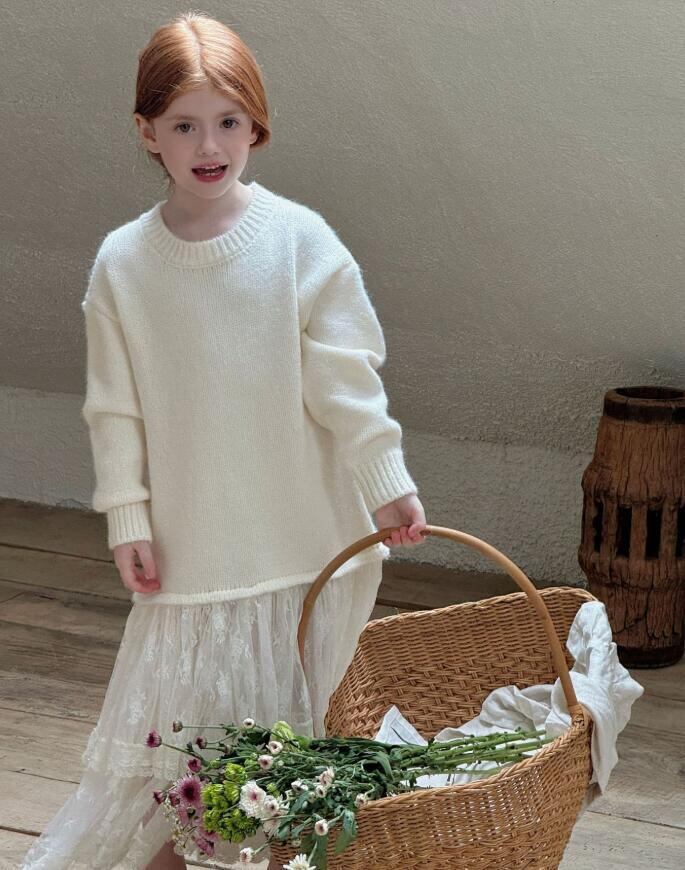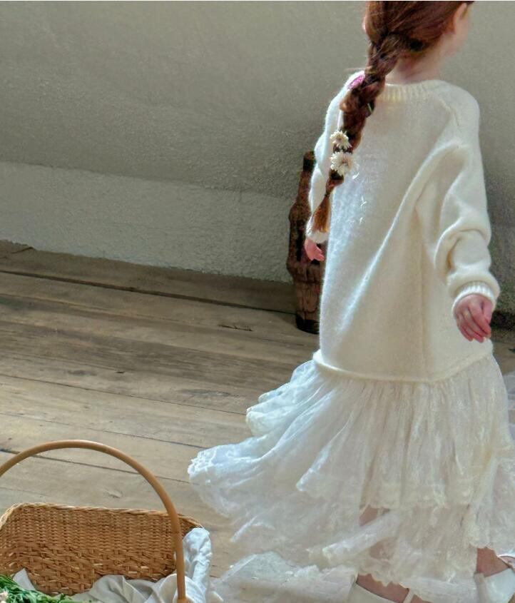 ■可愛らしいニットセーターレースデザインが魅力のワンピース! ■柔らかな素材で、心地良い着心地を実現。毎日の遊びやお出かけにぴったりです! ■華やかさとシンプルさを両立させたスタイルで、特別な日からカジュアルな日常まで幅広くお使いいただけます♪