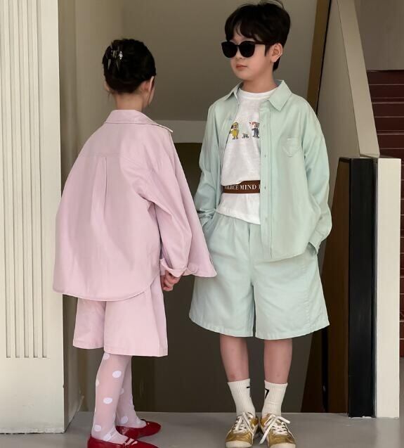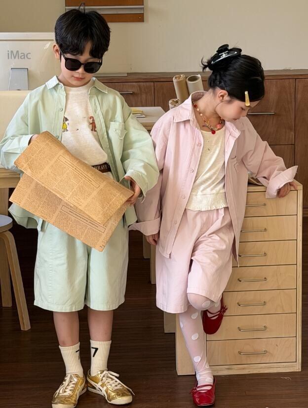 キッズ MXM カーディガンシャツ ショートパンツ セットアップ★100-160CM 2色