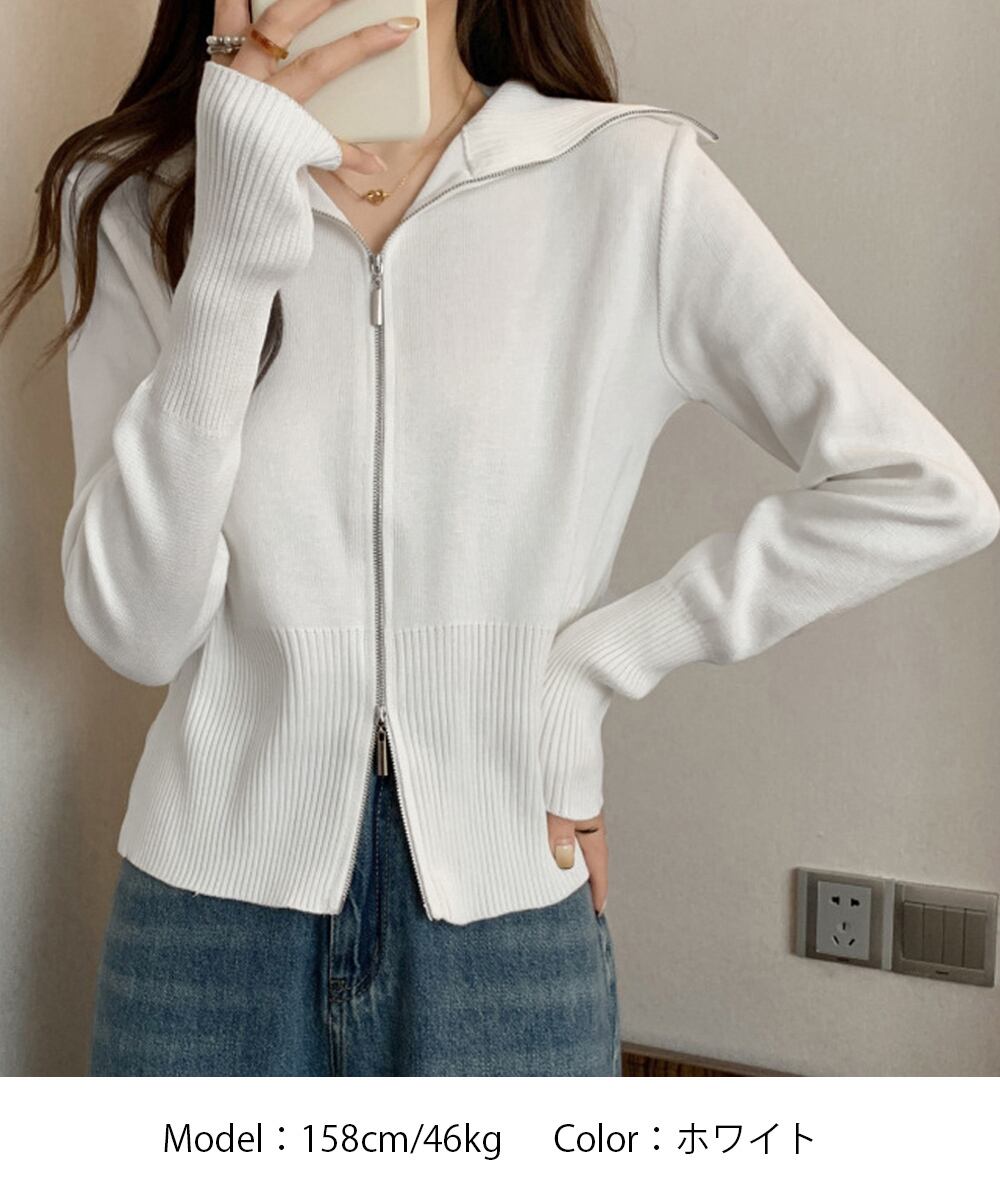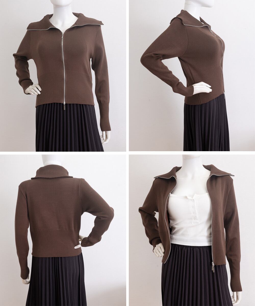 レディース 大人カジュアル フロントジップ ハイネック リブニット 長袖 前開き 無地 着やせ ニットセーター お洒落