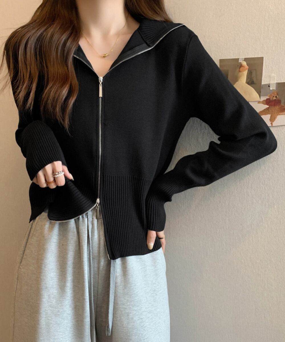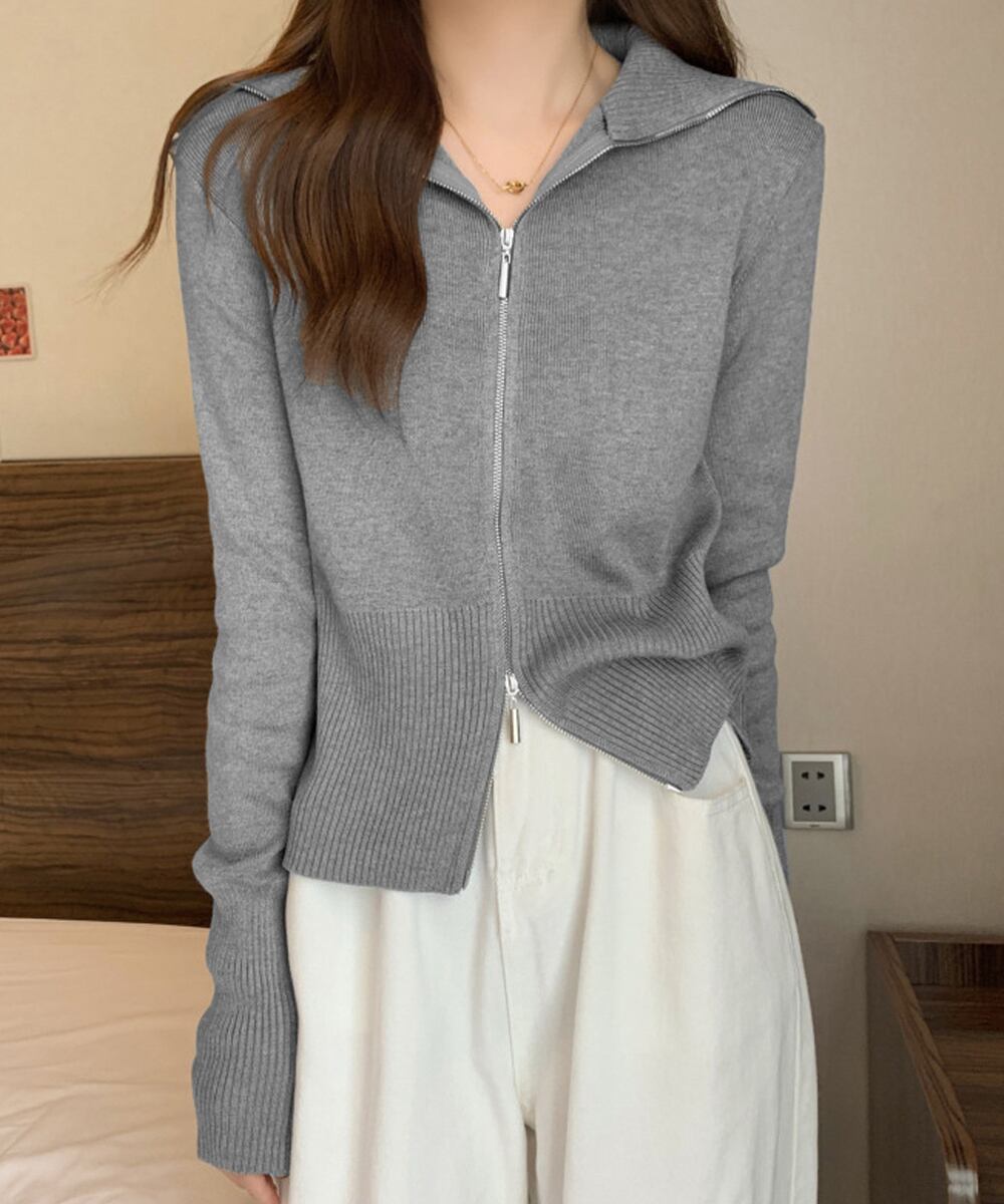 韓国風ニットウェア/きれいめニット大人/前開きニットカーデ