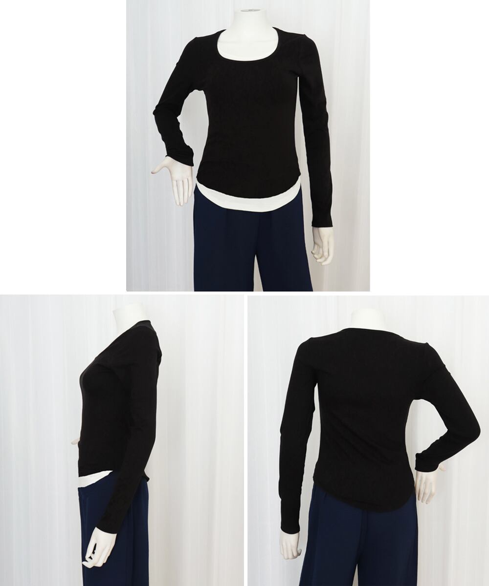 フェイクレイヤード風デザインがコーデのポイントになる。