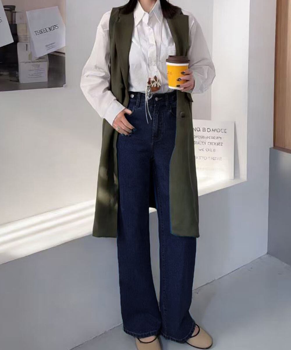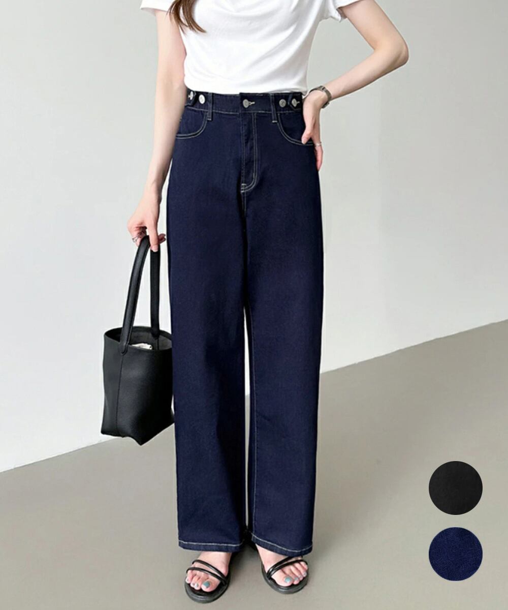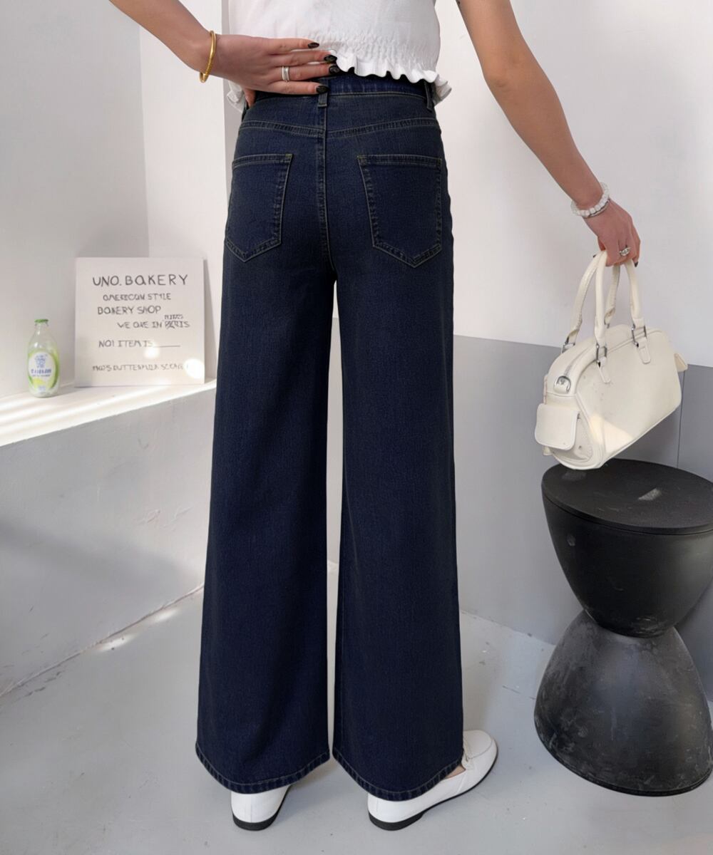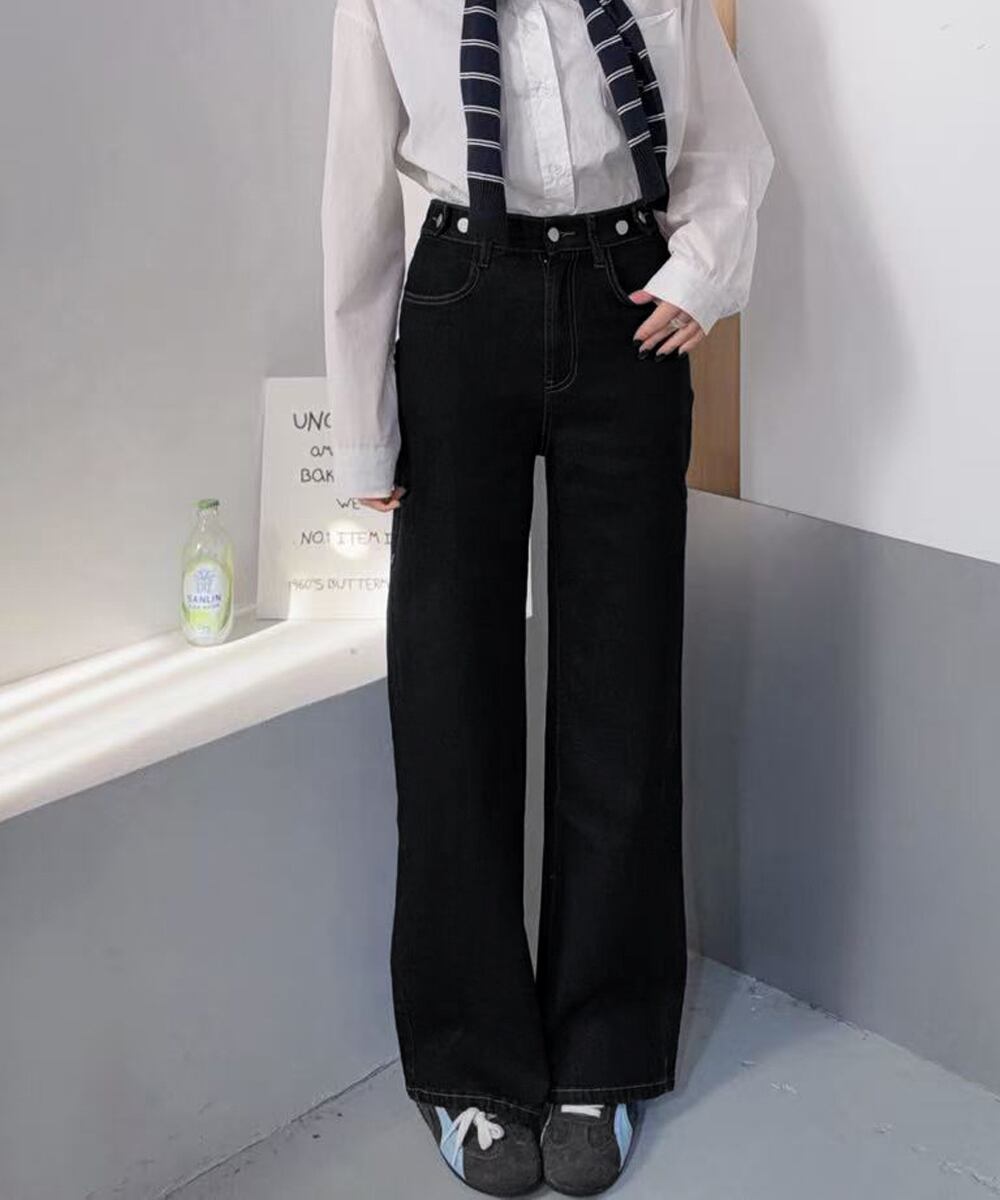ハイウエストストレートデニム 大人美脚脚長パンツ 着やせロングパンツ カジュアル細見えジーンズ 体型カバーボトムス韓国風