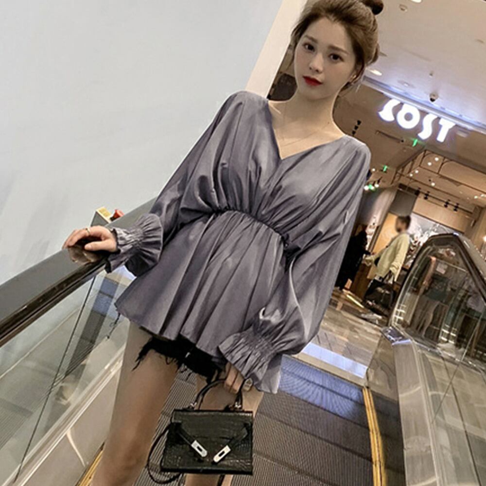 キャンディースリーブ ペプラム ブラウス 春夏 着やせ 長袖 パフスリーブ おしゃれ ゆったり 通勤 大人エレガント