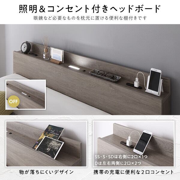 セミシングル、シングル、セミダブル:2口コンセント(1500W)×1(右側)
