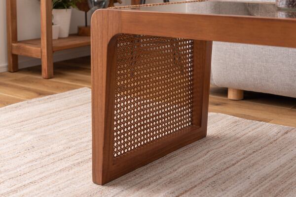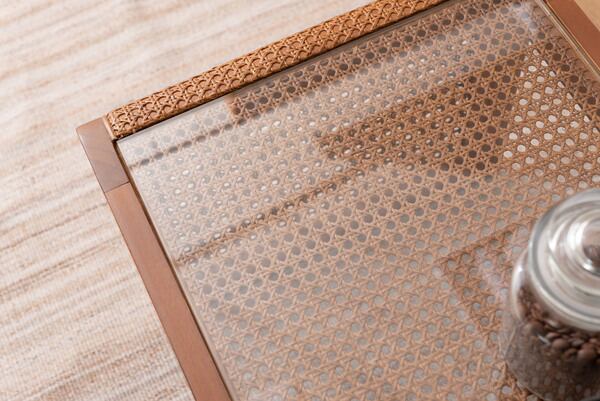 仕様天然木(ミンディ) ラタン ラッカー塗装 5mm強化ガラス