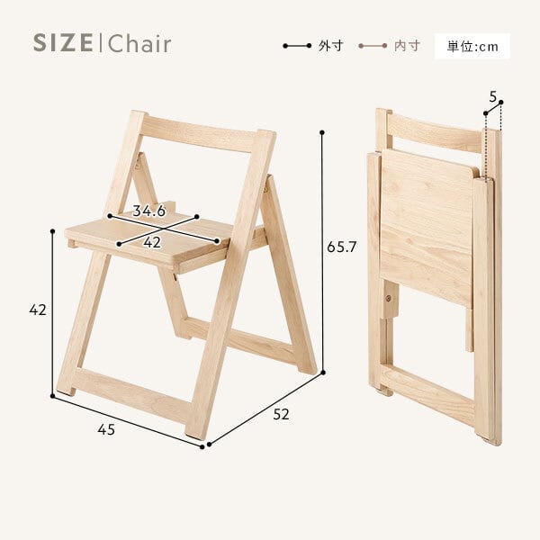 チェア:幅45×奥行52×高さ65.7(座面高42)cm ※1脚あたり
