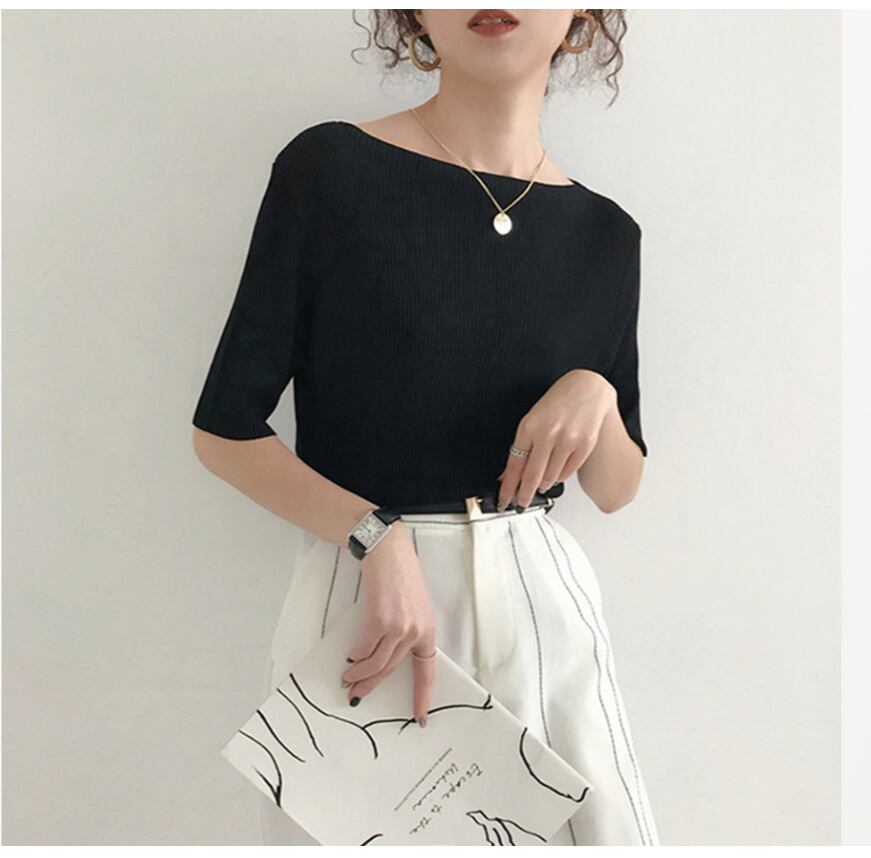 ニットトップス ボートネック ニットソー 無地 プルオーバー シンプル 韓国ファッション