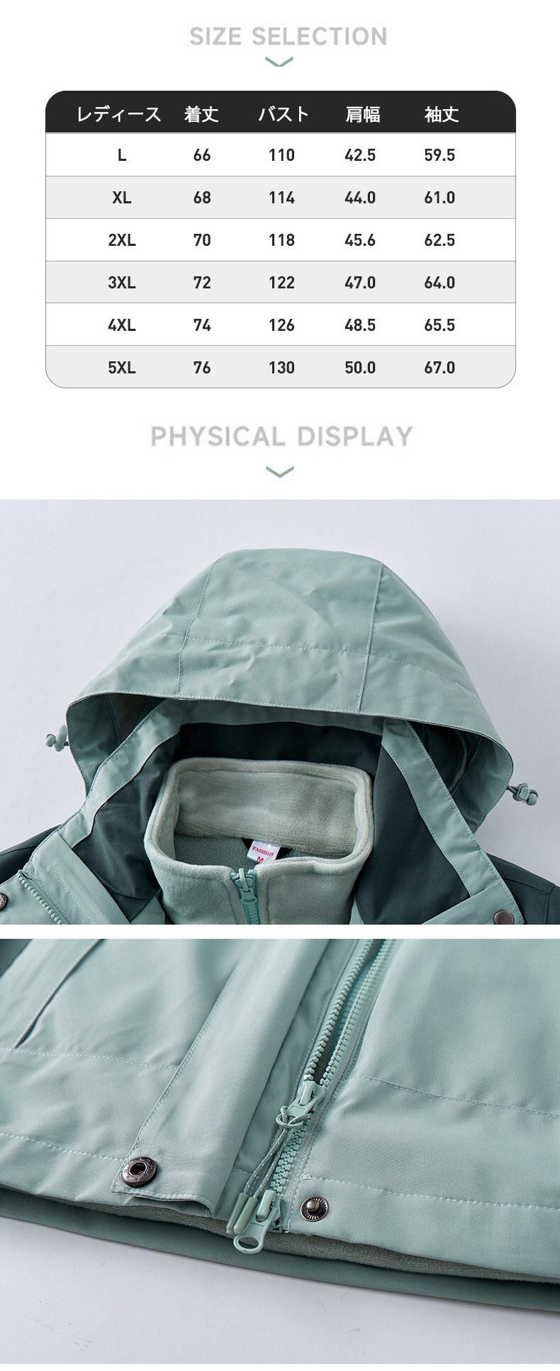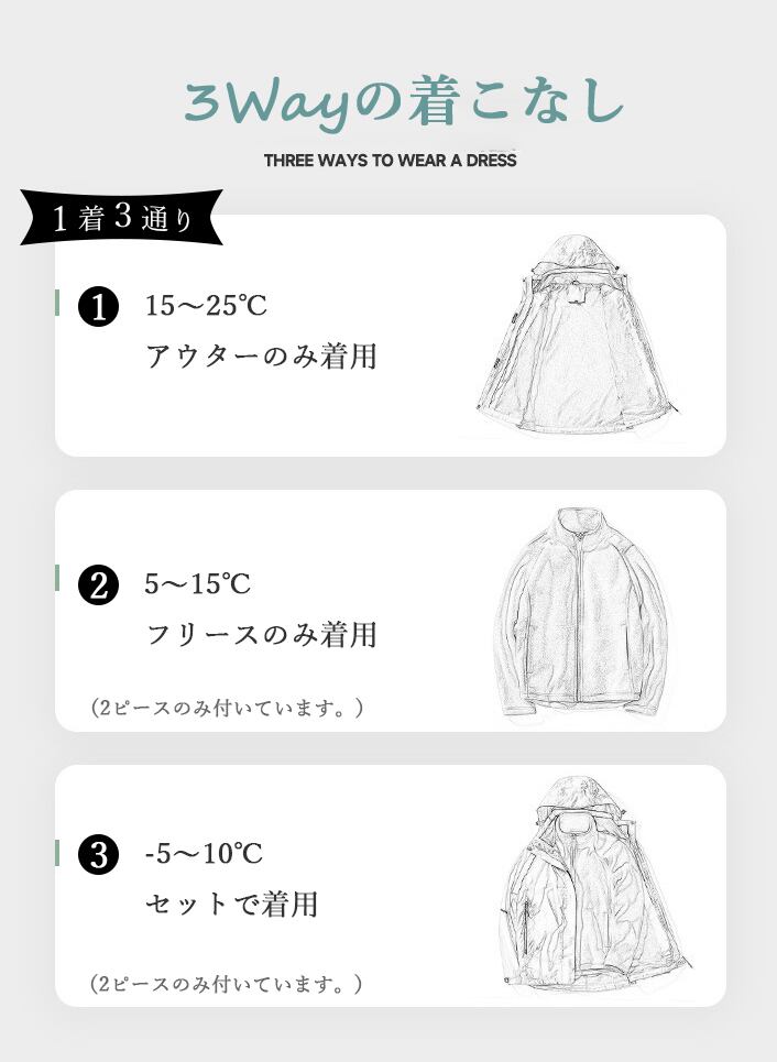 ・2ピースは取り外し可能で、気温によって3wayの着こなしができます。