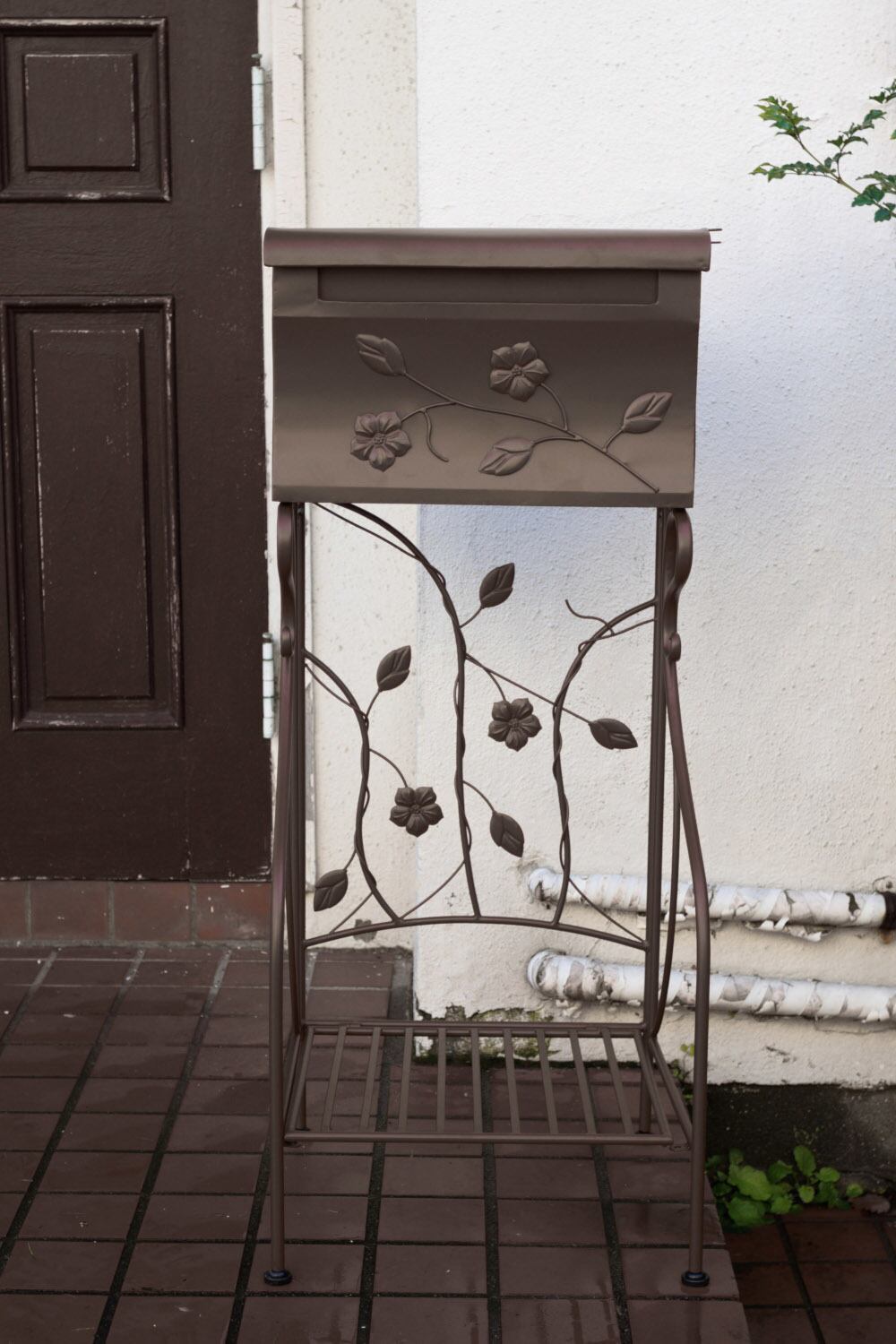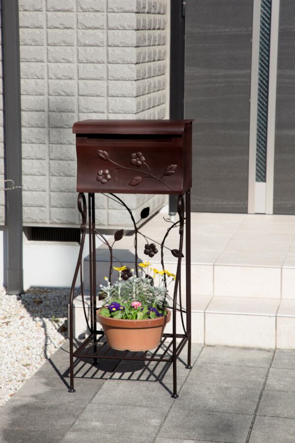 ●ポストの下には、植物や物などを置くことができる棚付きで便利です。