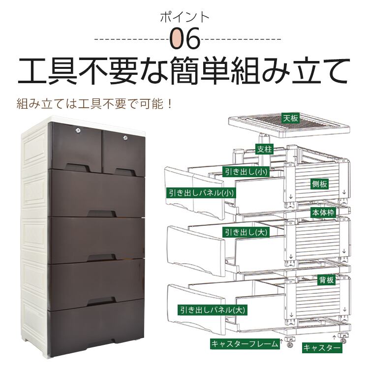 衣類を並べて収納が可能なワイドタイプ。収納段数は5段でワンシーズンの衣類を収納することができます。
