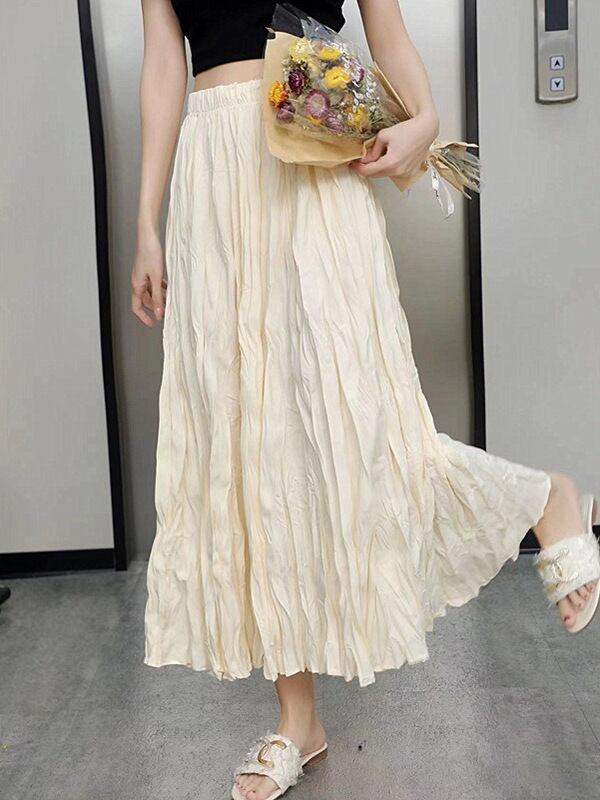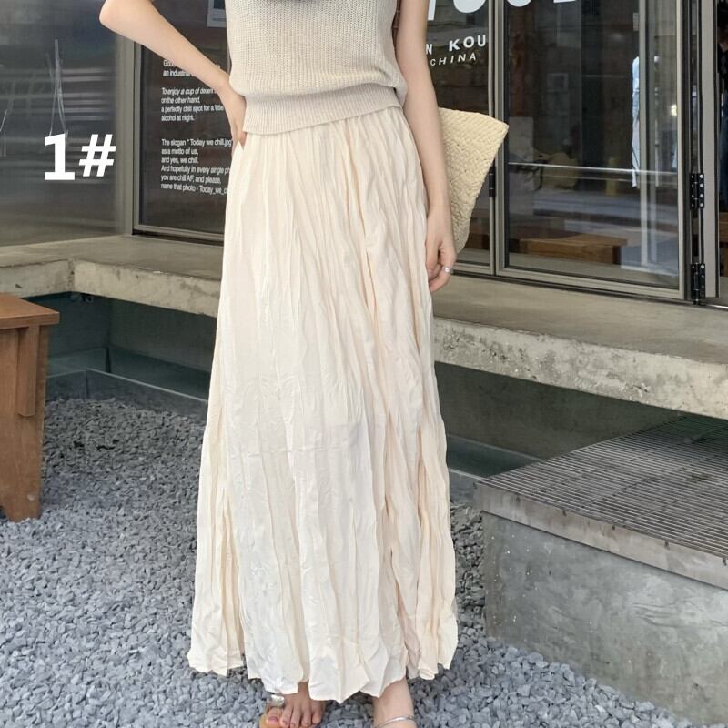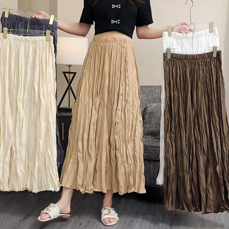 スカート ロングスカート ボトムス ミモレ丈 レディース ゆったり ウエストゴム ハイウエスト 全6色