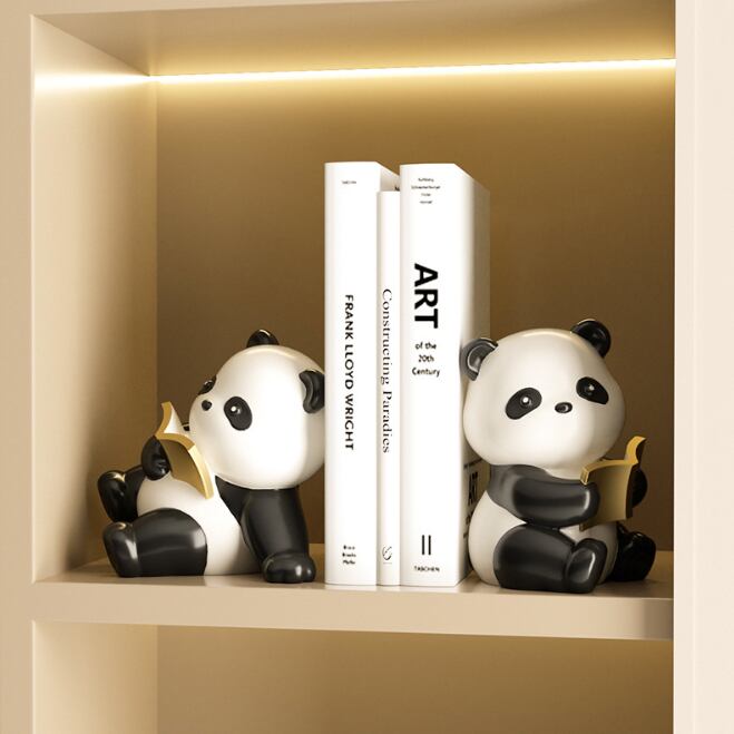 ブックエンド パンダ置物 可愛い ペアセット オブジェ 本棚装飾 高級感 事務用品 本収納 卓上 本たて