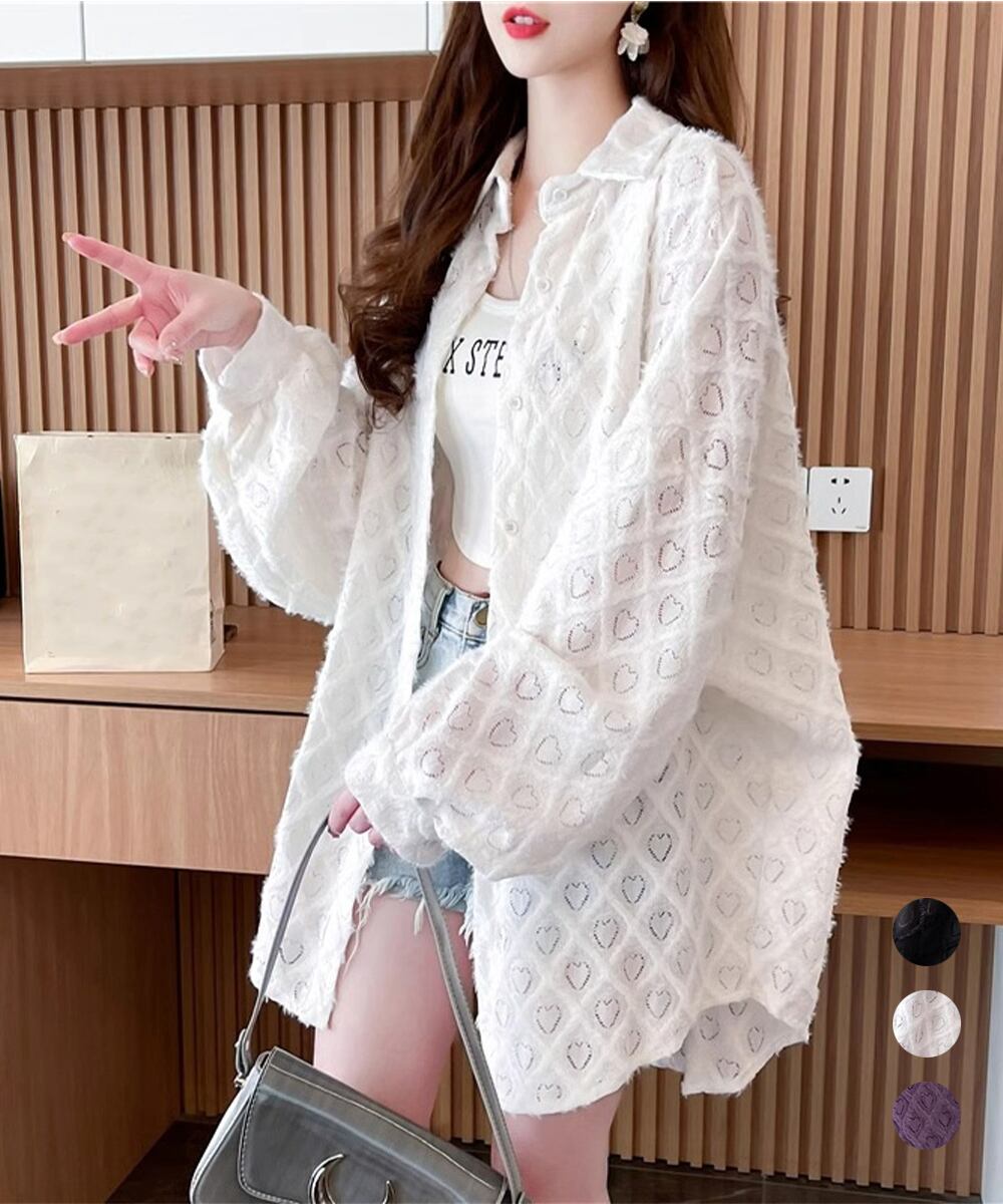 ハートジャガードシャツカーディガン春夏秋