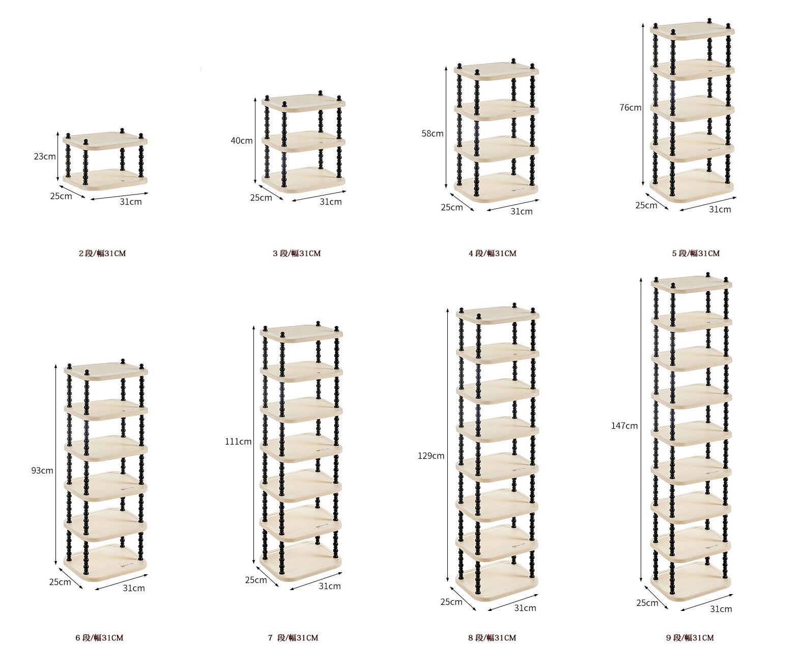 ・2段から9段までのバリエーションで使い方に合わせて自由自在にご使用いただけます。