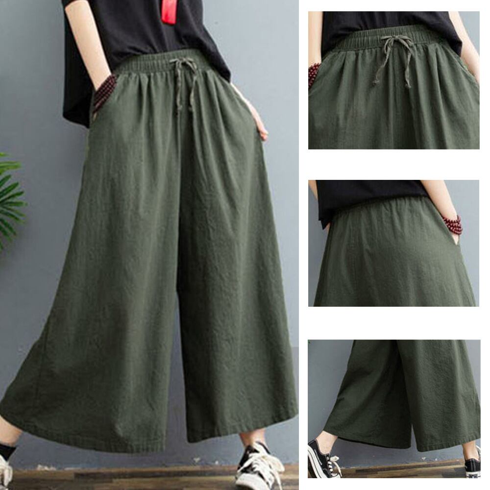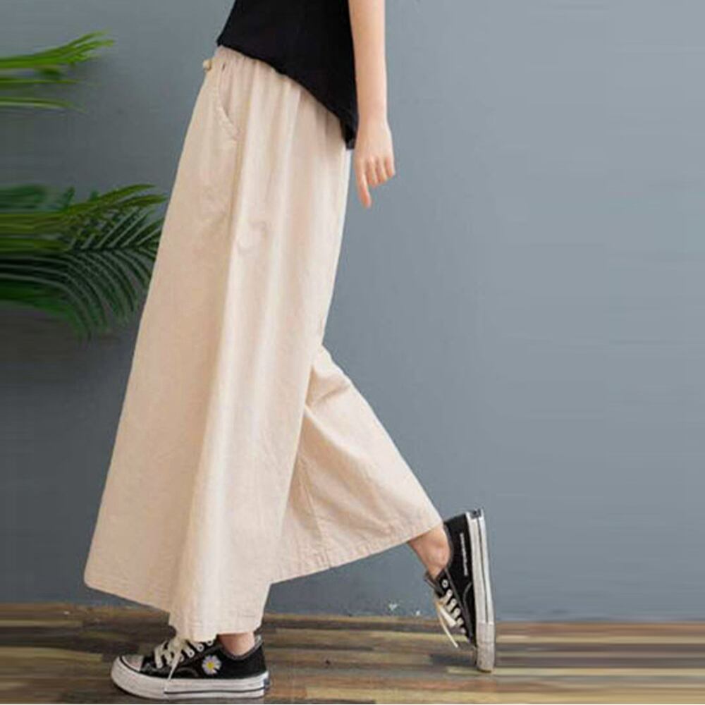 ワイドパンツ/綿麻 パンツ/ゆったり ボトムス