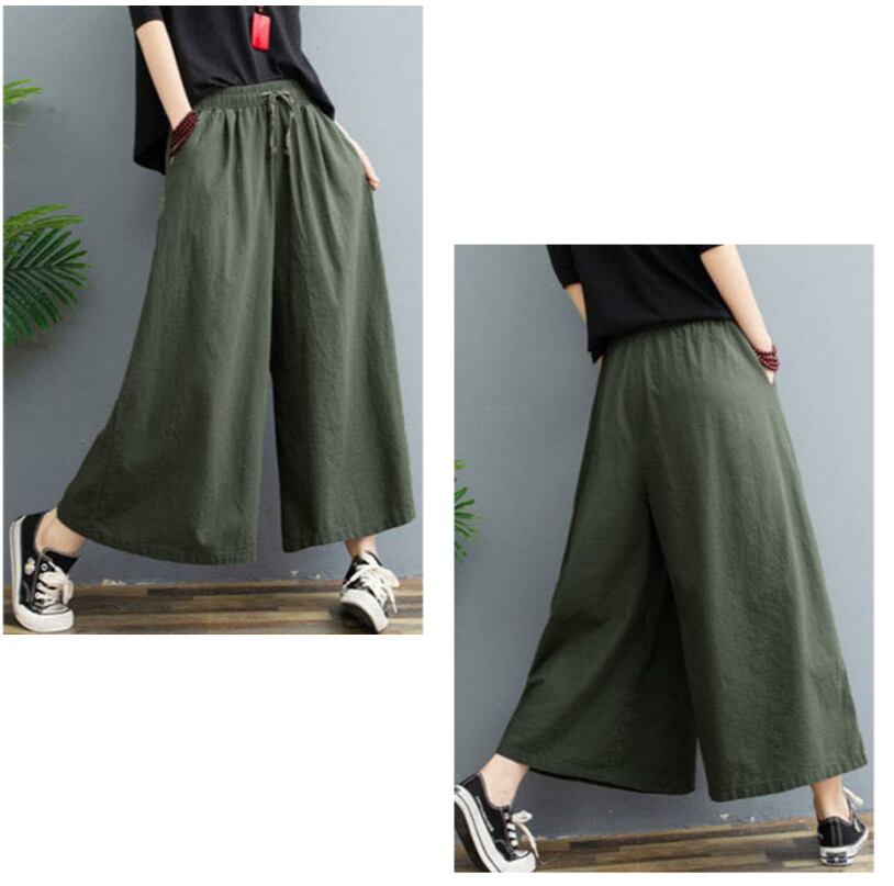 リネンワイドパンツ レデイース ガウチョパンツ スカーチョ ウエストゴム