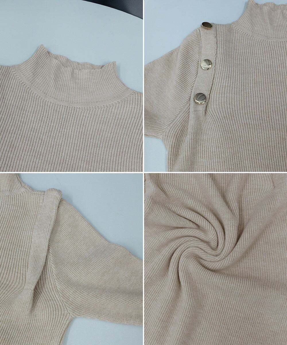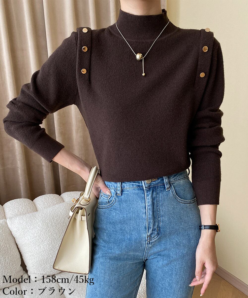 メタルボタンニットトップスプチハイネック