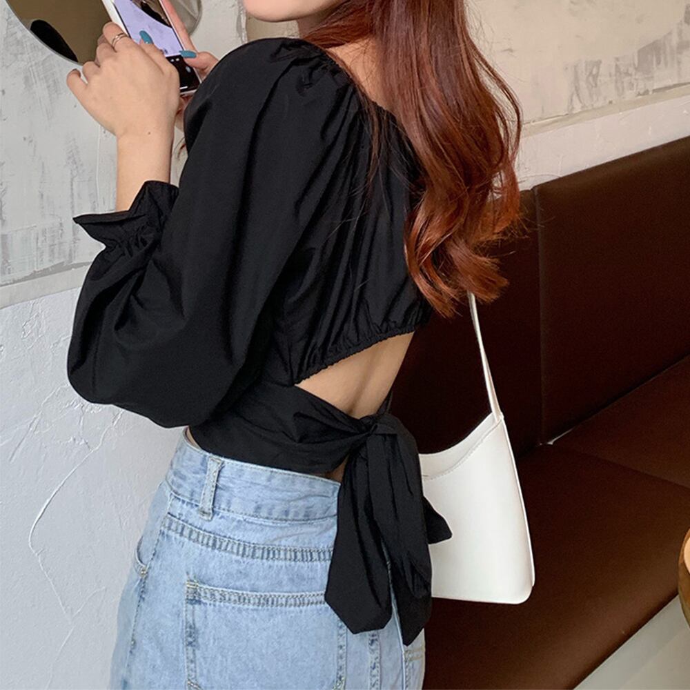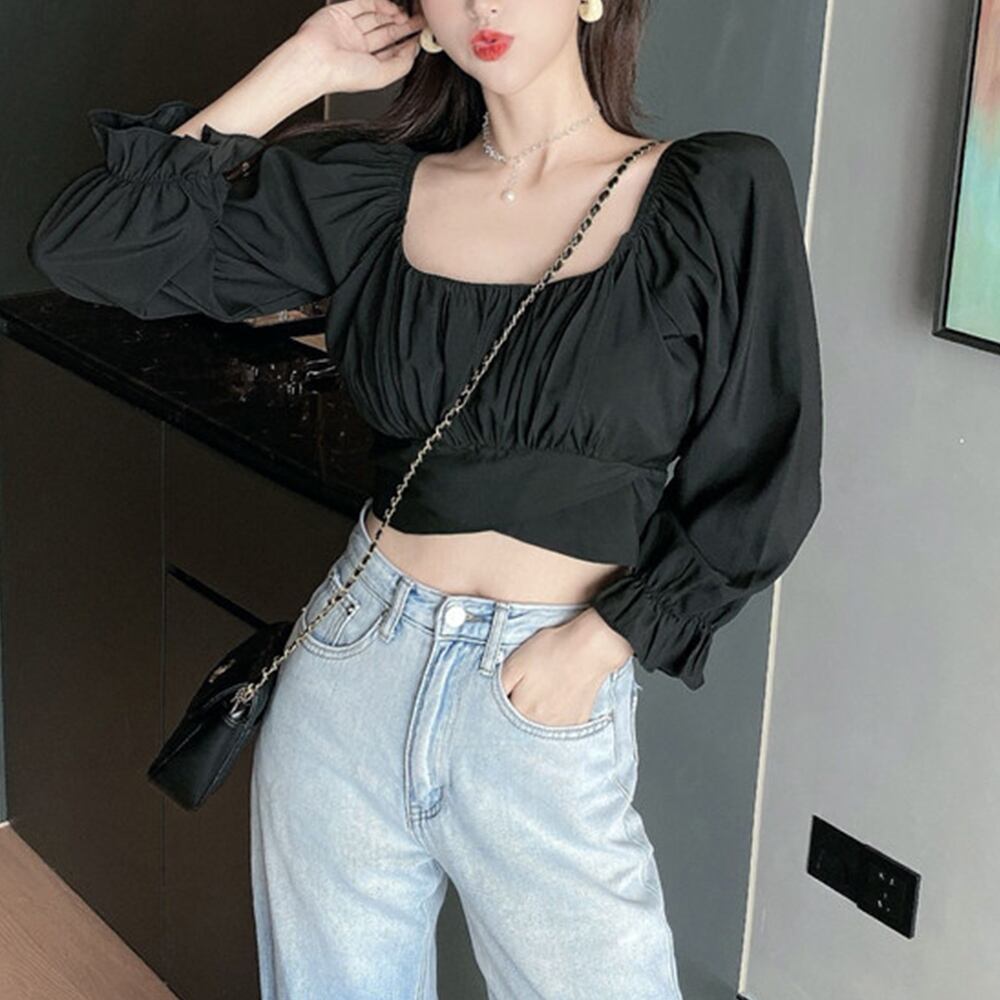 長袖 シャツ ショート丈 へそ出し シンプル レディース トップス