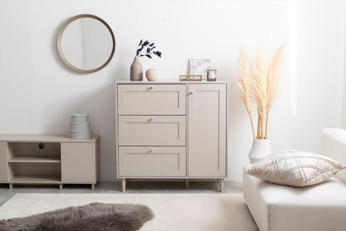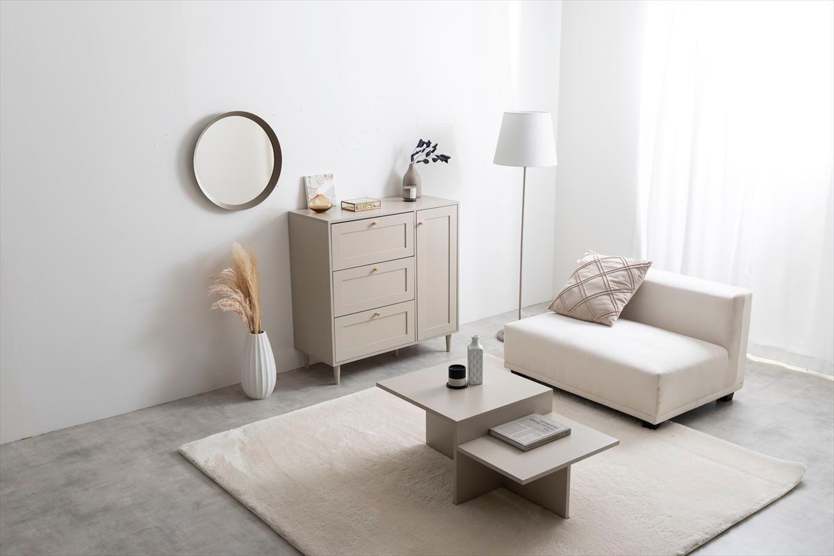品のあるデザインと柔らかなニュアンスカラーが印象的な『Calan(カラン)』シリーズのキャビネット