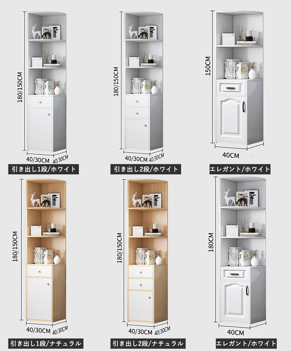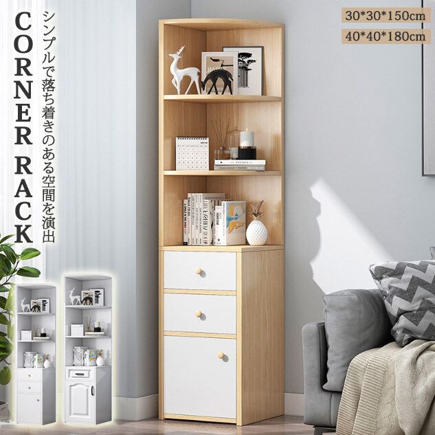 【1段/30*30*150cm】コーナーラック コーナー収納 リビング オフィス キャビネット 三角収納 オープンラック 引き出し