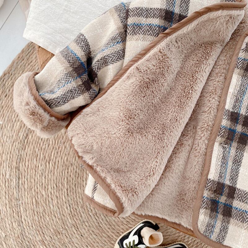 秋冬新作 厚手 裏起毛 コート チェック柄 子供服 ジャケット カジュアル トップス 男女兼用