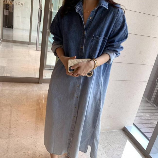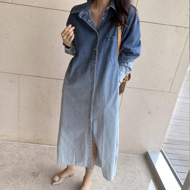 ・グラデーションが綺麗なデニムシャツワンピースです。