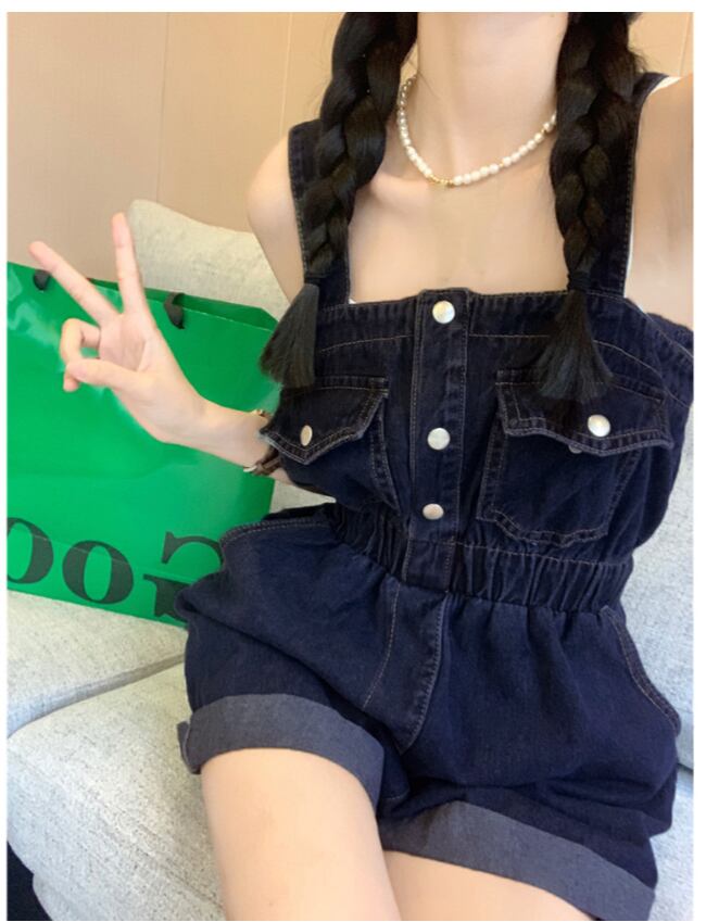 レディース デニムパンツ ショートオーバーオール 韓国ストリート カジュアル レトロ着やせつなぎパンツ ハイウエスト美脚