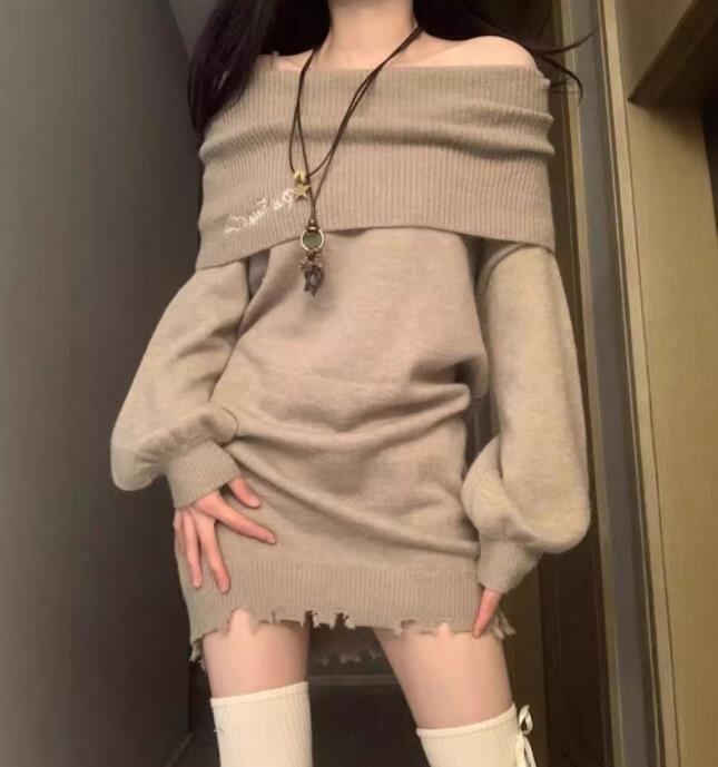 2024春秋新作 女 レディース ハイウエスト 長袖 ニット ミニ ワンピース ドレス タイトスカート