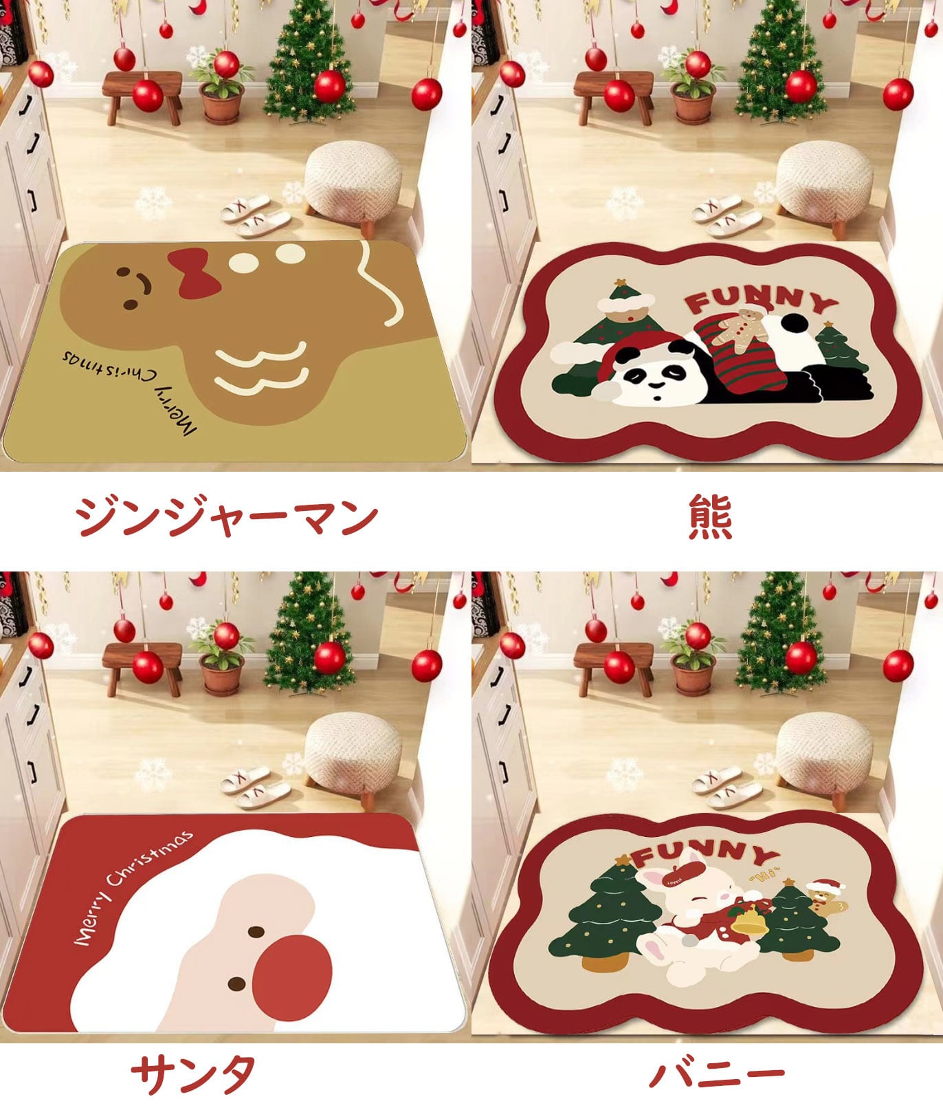 【40*80cm 2点】クリスマスマット 珪藻土 バスマット 浴室マット キッチンラグ 玄関マット 抗菌 防臭 防ダニ お風呂マット