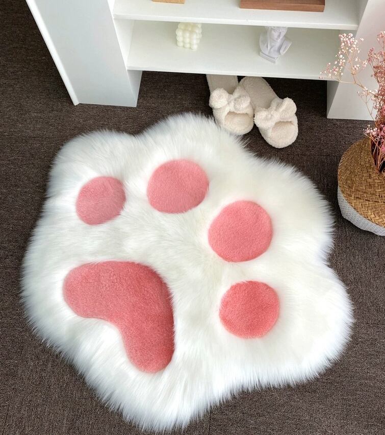 ・可愛い猫足型のふわふわ ラグマットです。