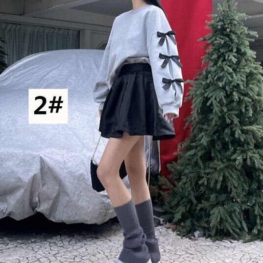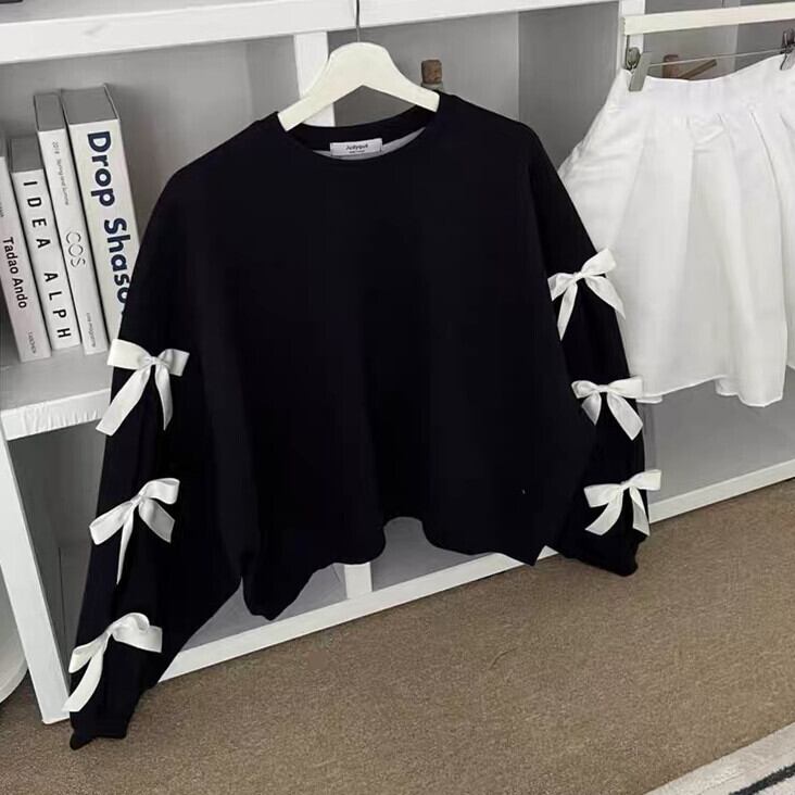 サイドリボン トップス レディース Tシャツ 長袖 カットソー 2024年秋新作 ラウンドネック ゆったり