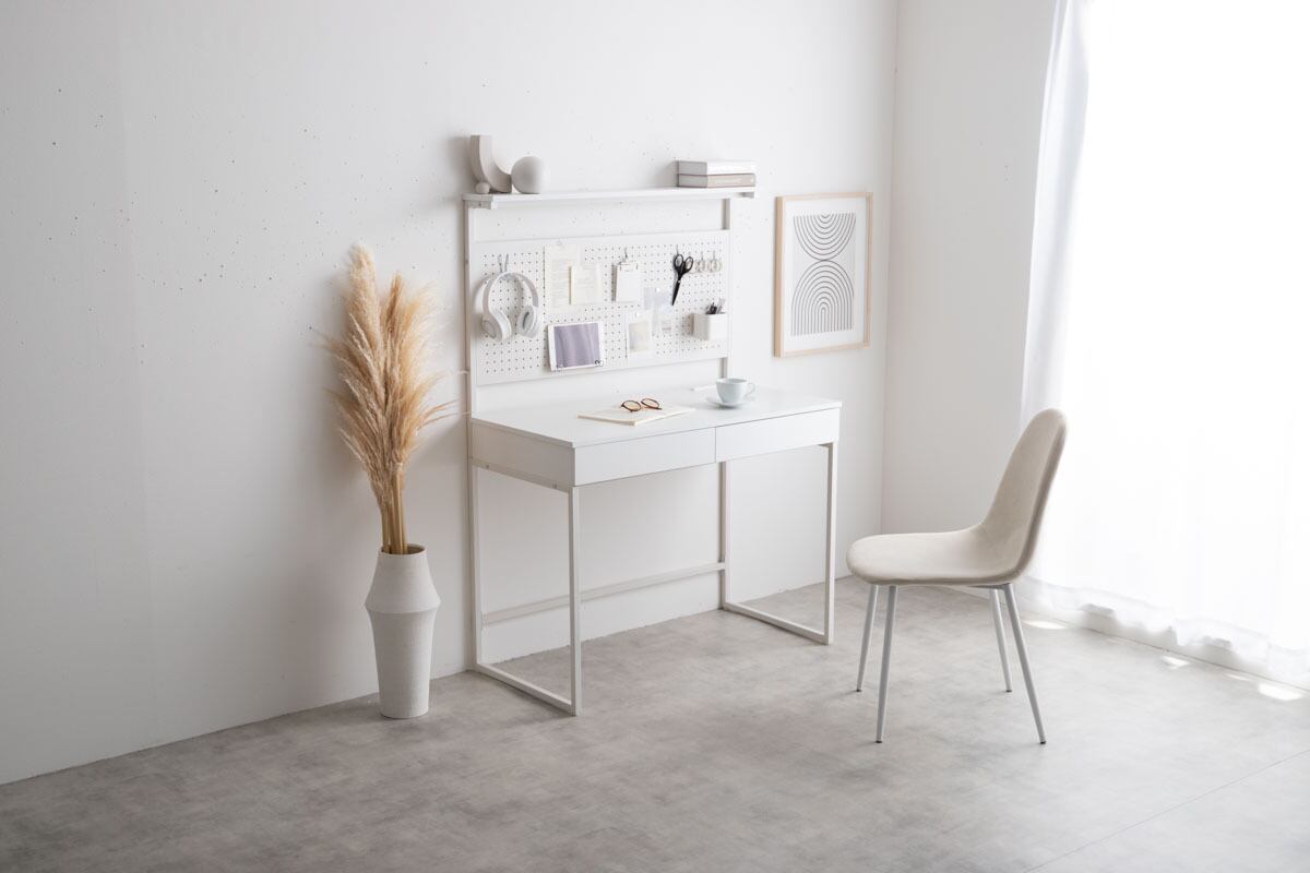 自分好みにアレンジ自在『Finley(フィンレー)』有孔ボード・引き出し付きデスク
