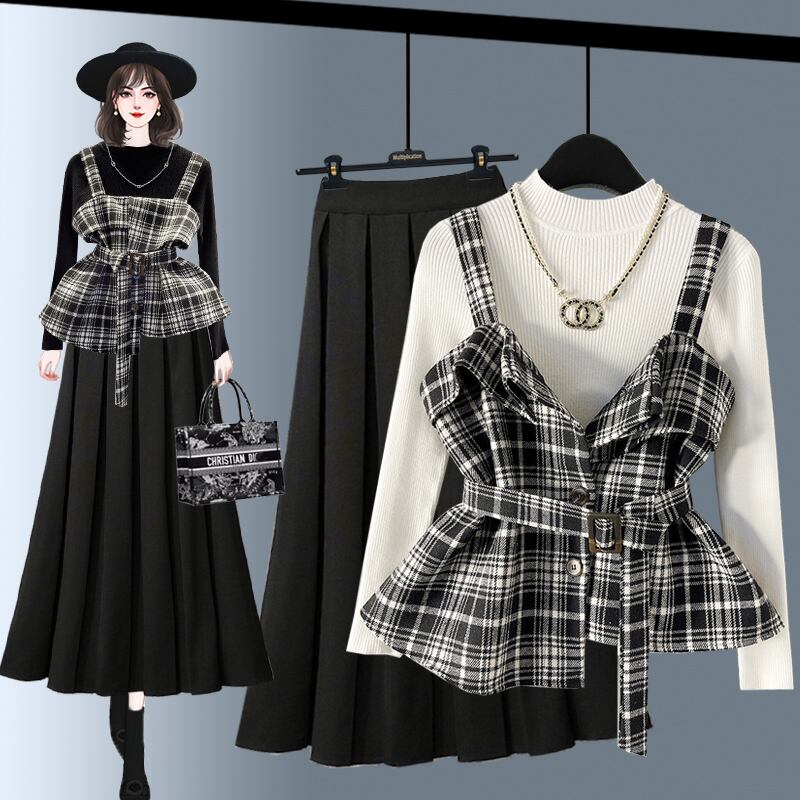 【ベスト+セーター+スカート】韓国ファッションウールベスト3点セット レディース新作