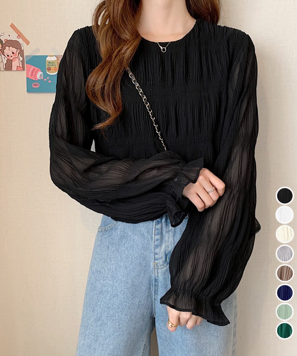 シャーリングブラウス 長袖トップス韓国風
