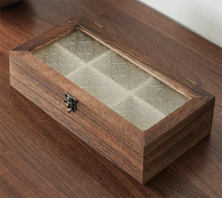 木質収納ケース レトロ 分格 天板 防塵収納ケース 指輪収納 デザインセンス 収納ケース