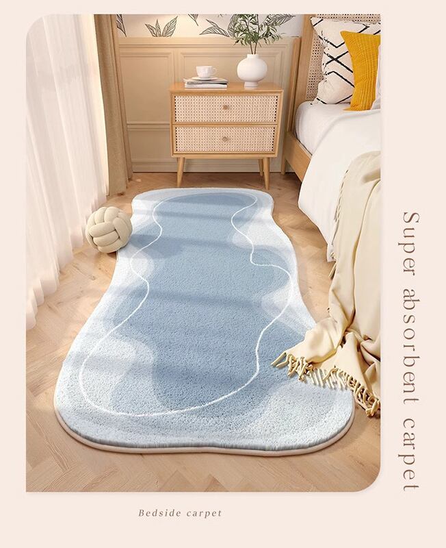 ・こちらのラグにはなめらかな肌触りのマイクロファイバー生地を使用です。