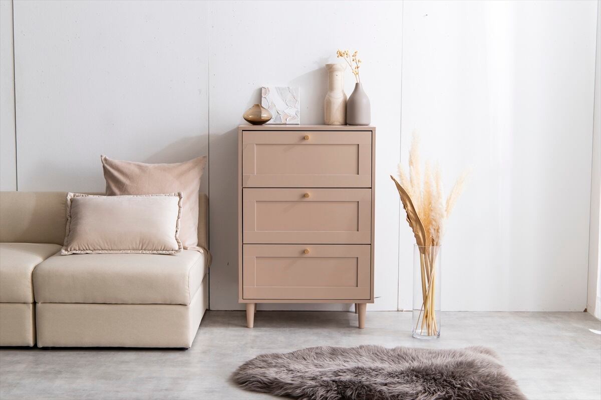 品のある框(かまち)デザインと柔らかなニュアンスカラーが印象的な『Calan(カラン)』シリーズのチェスト