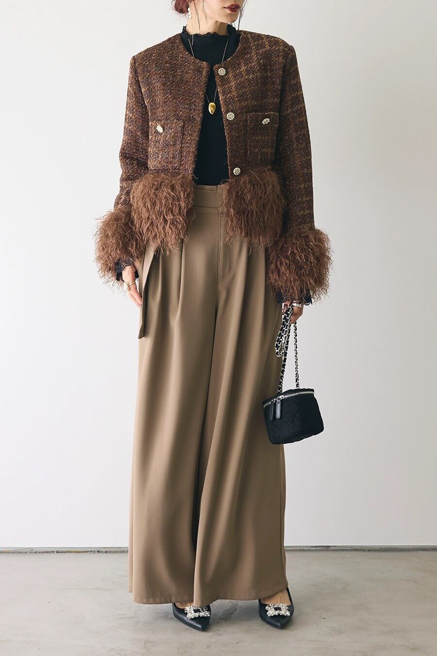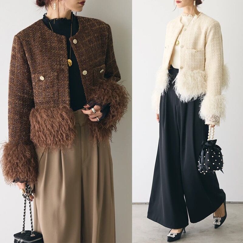 韓国ファッションファー切替厚手棉入りトップスアウター レディース新作