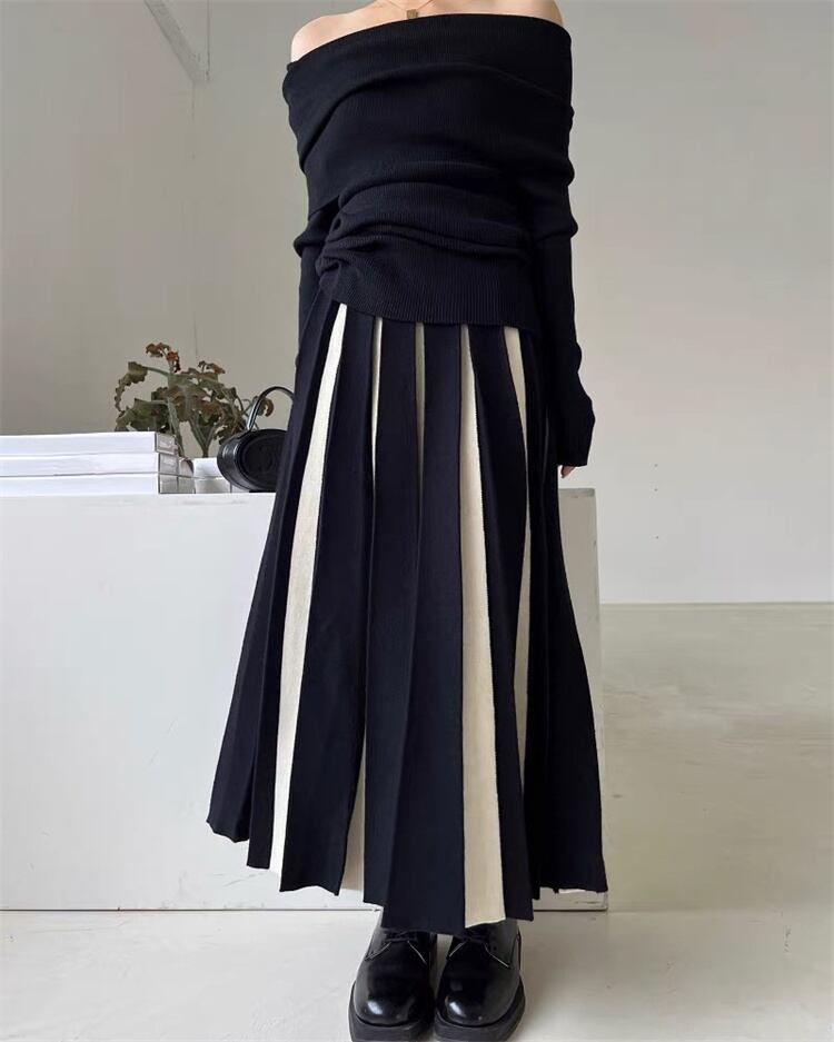 ニットスカート 秋冬 シンプル プリーツスカート 傘スカート スカート ロング