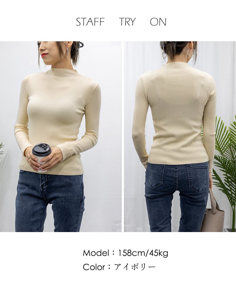 無地ニットインナー ぴったりニット大人 ボトルネックニット