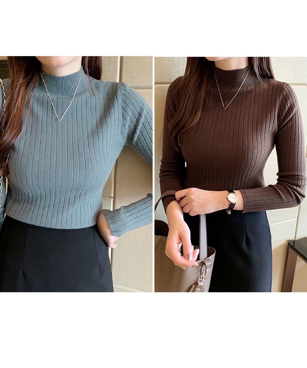 無地ニットインナー/ぴったりニット大人/ボトルネックニット
