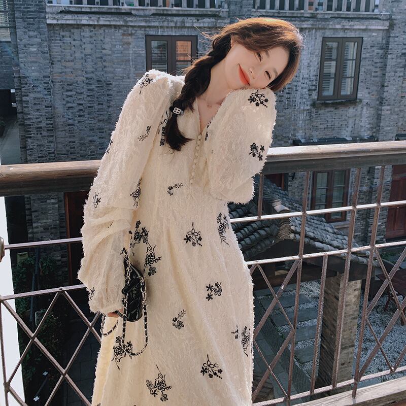 人気ファッション高質刺しゅう小花付きワンピース レディース 春新作