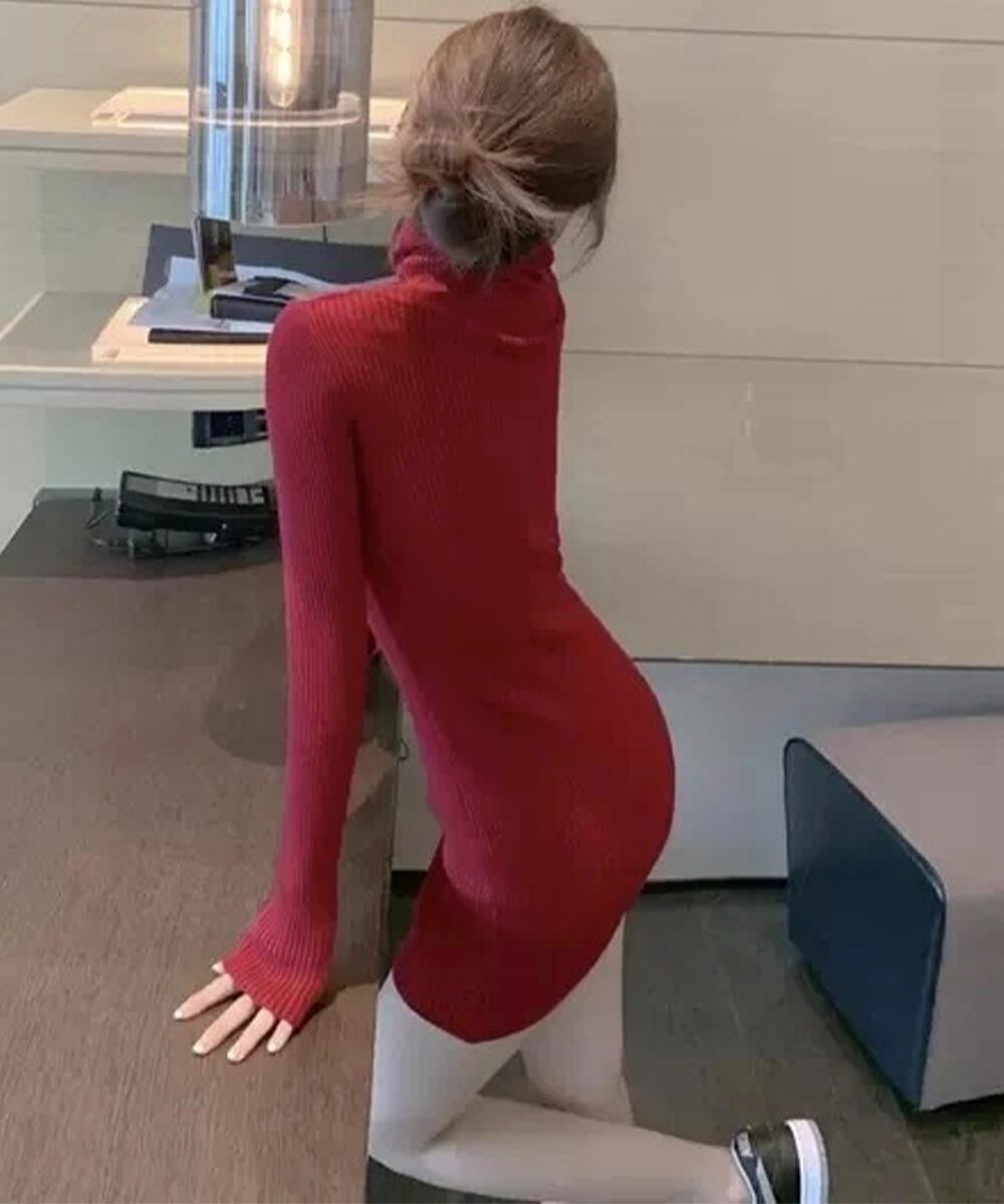 レディース タートルネック ニットドレス おしゃれ 秋冬ボディコンワンピ 無地 スリムフィット 韓国 セクシーワンピ細身